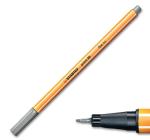 Fineliner Stabilo® point 88®. A hegy típusa: 0,4 mm-es, fémborítású hegy, sablonhoz alkalmas. Az írófolyadék típusa: vízbázisú tinta, fényálló. A toll végére rögzíthető kupak. A markolatzóna kialakítása: műanyag. A kupak színe: az írás színében. A hordó színe: narancssárga színű, fehér szélű csíkokkal.